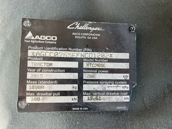 | 2015 AGCO MT765E CHALLENGER TRACK TRACTOR | |