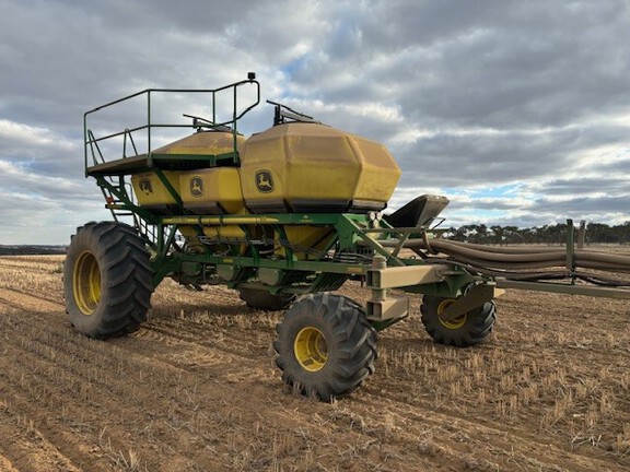 2019 John Deere 1910 air cart, 340 Bu (12,000L), 3 tank tow behind, 12" load/unload conveyer, 3m tread spacing, single shoot with section control meters, single fan, available early 2026.