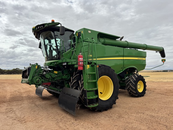 2019 John Deere S780 combine, 2828 rotor hours, 650 duals, combine advisor camera package, active yield, straw chopper with power cast tailboard, Seed Terminator seed control unit, 745FD flex draper, ideal canola & lentil platform, 45' cutting width, top cross auger & trailer.